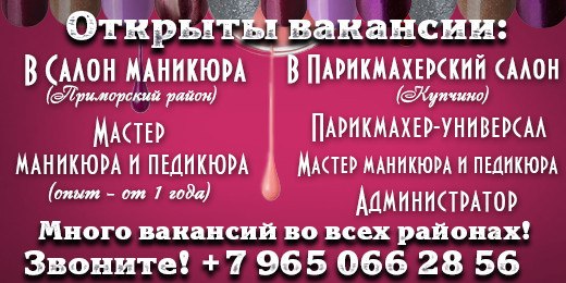 Приморский район — администратор от 25 лет, мастер маникюра и педикюра